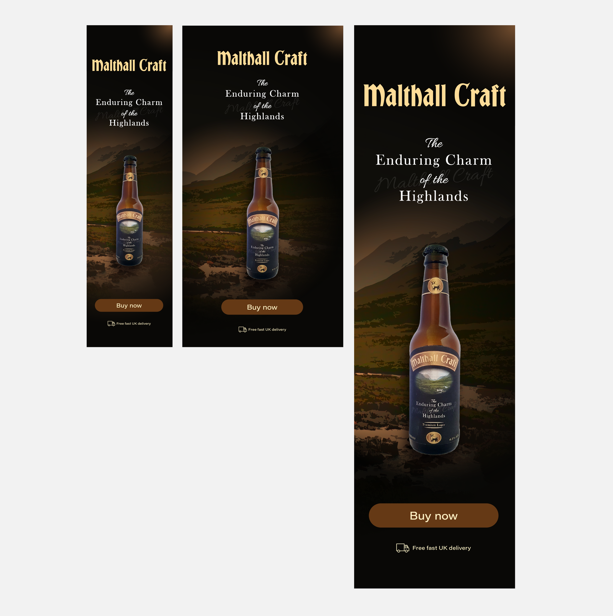 The project successfully established a strong visual identity for Malthall Craft’s 2025 launch, positioning the brand with a distinctive and authentic presence. Drawing inspiration from the Applecross Highlands, the designs created a narrative that emotionally resonated with consumers and reinforced the brand’s origin story.